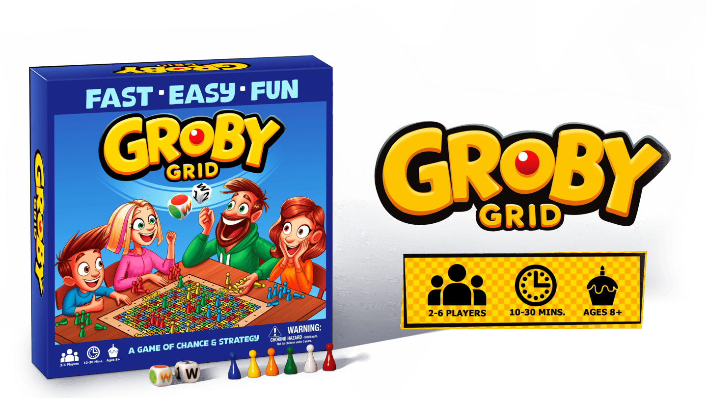 Welcome to Groby, the game where every roll gives you a new chance to win! Match colors and numbers to place your pieces on the board. Be the first to get four in a row to win—but watch out! A wild roll can let you take away an opponent’s piece or grab the perfect spot!